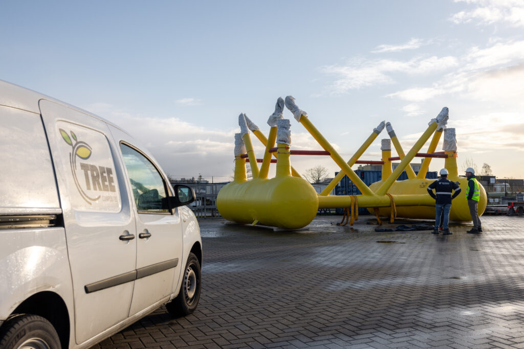 The worlds first full composite floating platform made with Tree Composites wrapped composite joints has been installed in the North Sea. The test platform for floating solar energy has been ordered by Seavolt, a collaboration between Tractebel, DEME, and Jan De Nul. The test platform has been put into operation to gather data for at least a year starting in September, aimed at the large-scale development of offshore solar energy. Tree Composites is proud to have been part of this project from design of the joints, to manufacturing of the complete floater.
